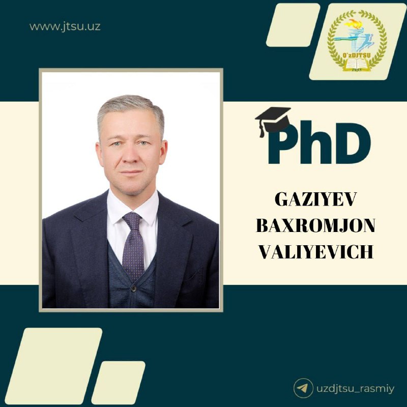 Gaziyev Baxromjon Valiyevichga mazkur mas’uliyatli ilmiy jarayonda omad, muvaffaqiyat va yorqin natijalar tilaymiz.
