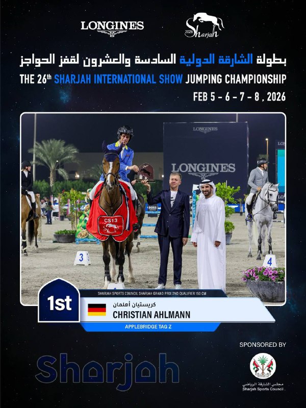 Mazkur yuqori darajadagi bahslarda g‘oliblikni Germaniyaning mashhur chavandozi Christian Ahlmann 🇩🇪 qo‘lga kiritdi. U bugungi kunda dunyoning TOP-10 eng kuchli chavandozlari qatoridan joy olgan bo‘lib, agar ot sportini futbol bilan qiyoslaydigan bo‘lsak, uni bemalol “ot sportidagi Ronaldo” deb atash mumkin.