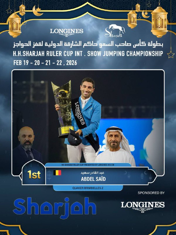 🐎🏆 Abdel Said H.H. Sharjah Ruler Cup xalqaro turniri doirasidagi Grand Prix 155 sm (Longines) yo‘nalishida g‘alaba qozondi.